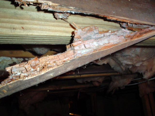 DECAYED MAIN STRUCTURE BEAM WATER DAMAGED WALL