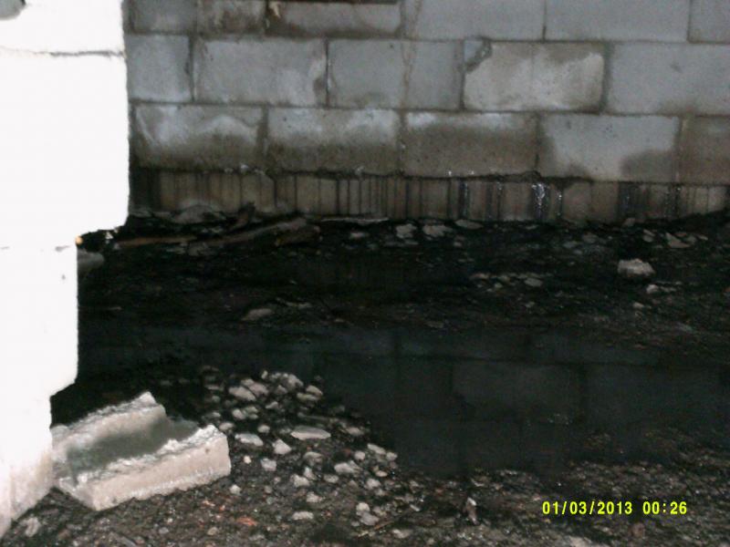STAGENT WATER - BLACK MOLD GROWING UP FOUNDATION WALL.