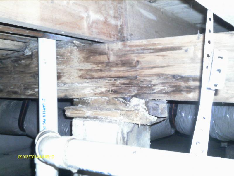 DECAYED MAIN STRUCTURE BEAM WATER DAMAGED WALL